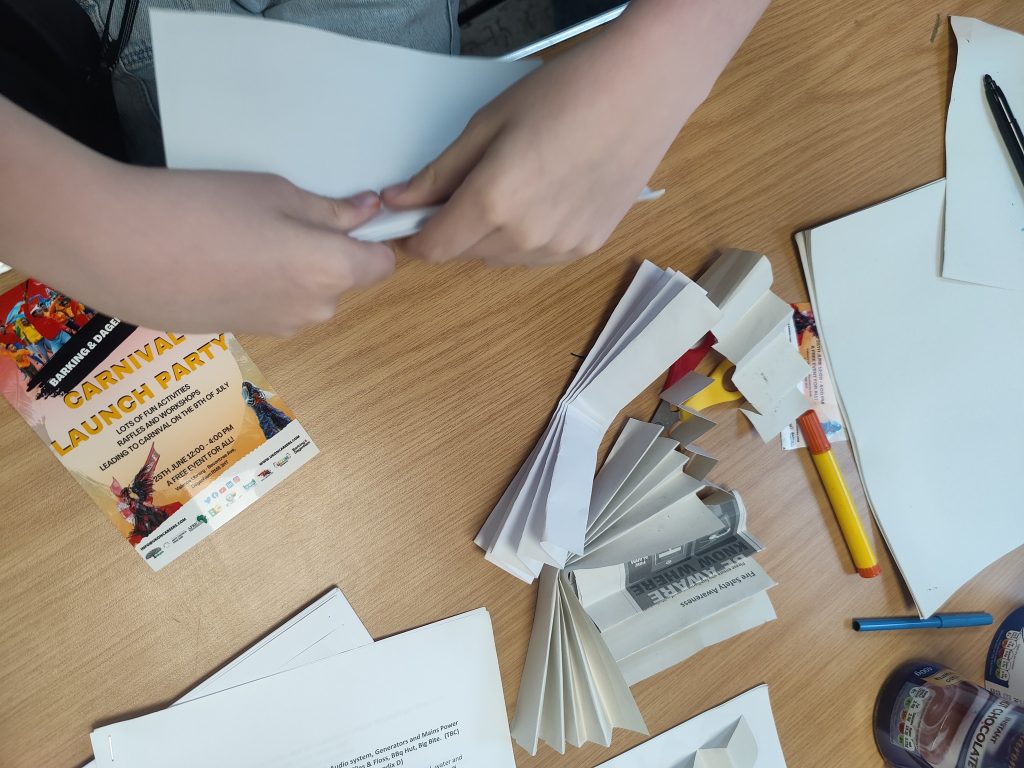 Together, we explored why recycling matters and discovered just how fantastic recycled materials can be for creative arts. From rubbish to remarkable, the transformation was incredible! The talented AB Phab members got stuck in and designed vibrant carnival flags that will be proudly displayed at the Barking and Dagenham Carnival this summer! 🎉🌈